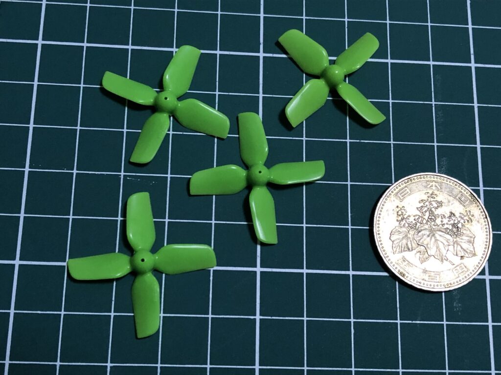次にプロペラを取り付けます。500円玉を比較におきましたが、ほぼ同じくらいの大きさ。