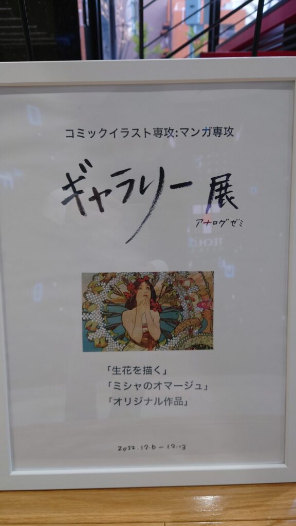 昨日より、OCA新校舎のエントランスに、コミックイラスト専攻と漫画専攻のアナログゼミによる作品が展示されていました。