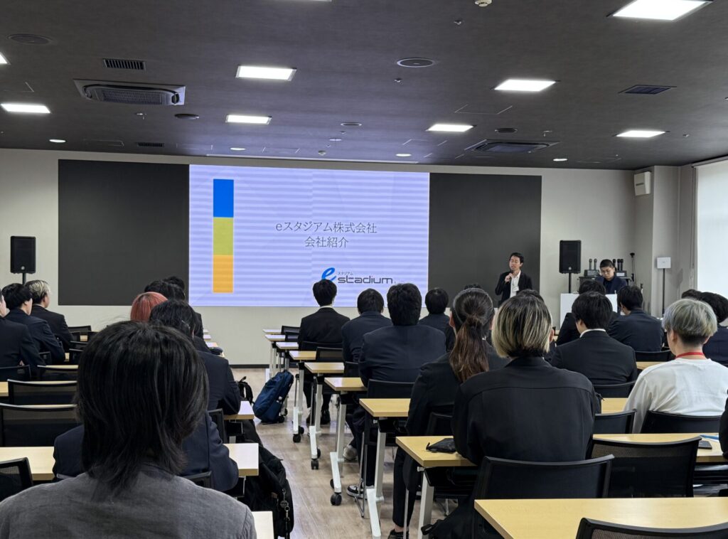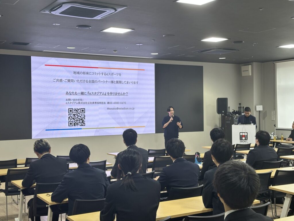e-sportsプロゲーマー専攻の卒業生が実際に会社説明をしている様子です🎮