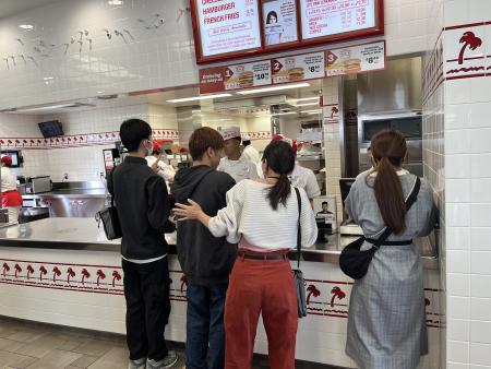 昼食は、アメリカ西海岸で人気のハンバーガーチェーン「IN-N-OUT BURGER」にて本場の味を体験しました!