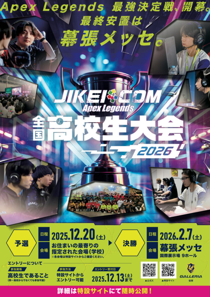 今年も開催が決定しておりますJIKEI COM Apex Legends 全国高校生大会🎮
