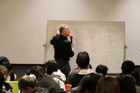 JIM先生のエネルギッシュでユーモアあふれる講義は、学生たちの緊張をほぐし、積極的に発言できる雰囲気をつくってくださいました。