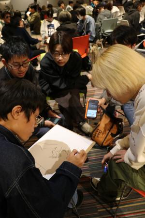 スケッチやプレゼンを通して、他グループとの交流も活発に行われ、言語や文化の壁を超えたコミュニケーションが生まれていました。