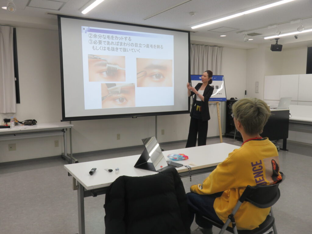 昨年度より近年の傾向に伴い、男子学生を対象としたメイク講座も実施しております。