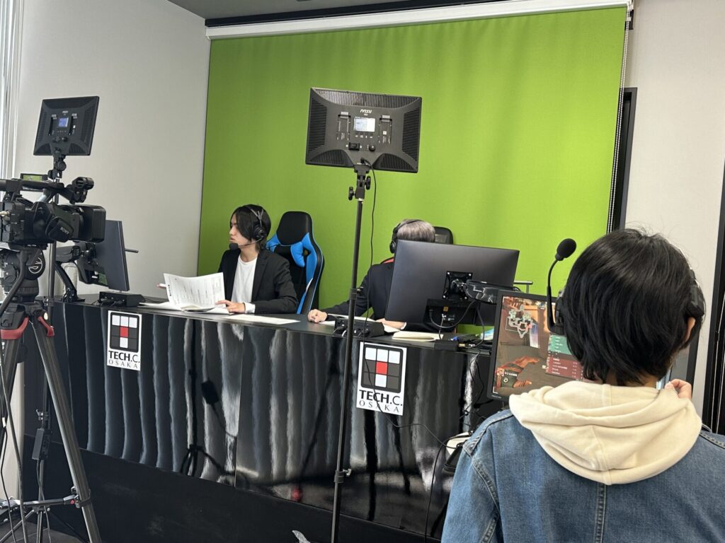 本校のe-sportsイベント・マネジメント専攻では、学生たちが主体となり、演出・技術・進行管理・台本制作・運営スタッフなど、それぞれの役割を担いながら一つのイベントを作り上げています。