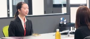 就職専門の先生が、一人ひとり丁寧に面接の練習を指導しています。面接でのプレゼンテーション能力を身に付けます。