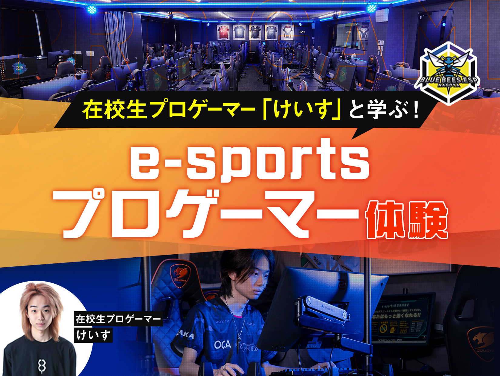 本校e-sportsプロゲーマー専攻の在校生であり、現役プロチーム所属の「けいす」と一緒に学べる!